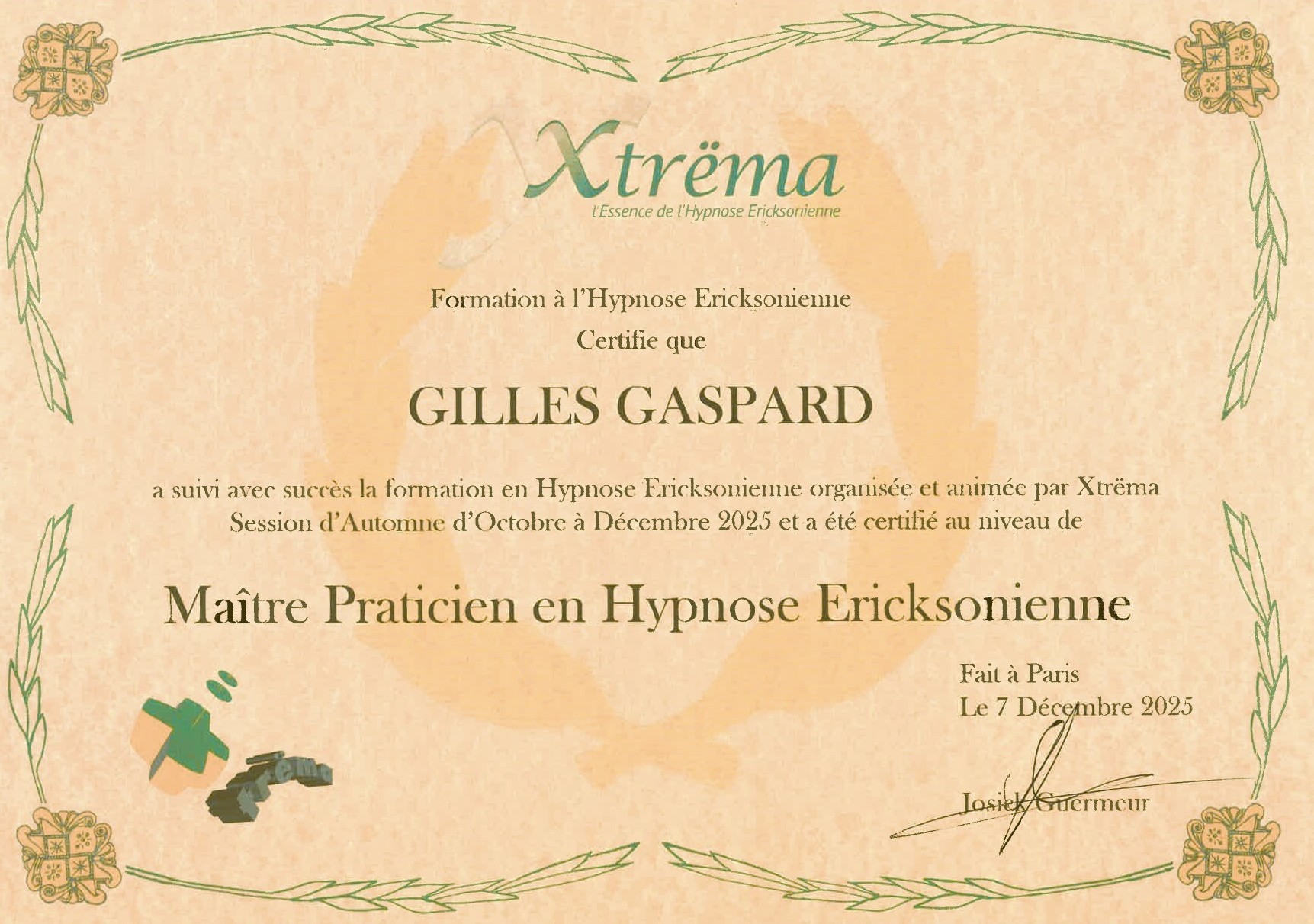 Gilles GASPARD — Maître Praticien certifié en hypnose ericksonienne